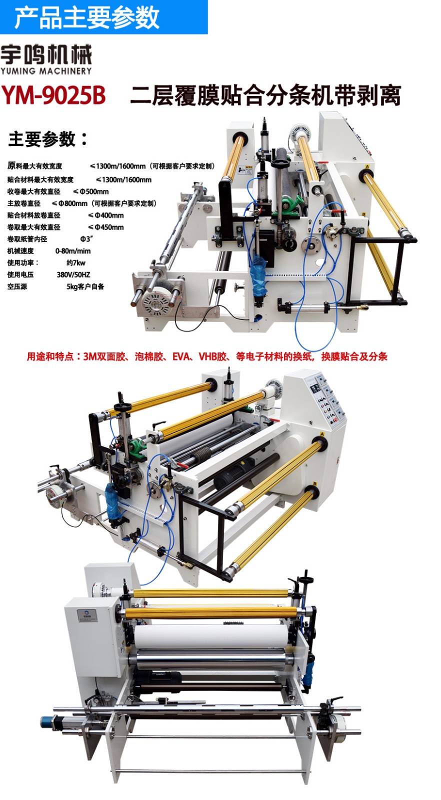 二层覆膜贴合分条机带剥离功能